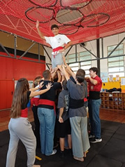 Neben der Beschäftigung mit dem Hauptthema erfuhren die Jugendlichen auch etwas über typische Traditionen und Lieder des jeweils anderen Landes. Der diesbzügliche Höhepunkt war ein Workshop, bei dem alle Beteiligten in die Tradition der castells (Bau von Menschentürmen) eingeführt wurden. An den Nachmittagen bot das meist noch sommerliche Wetter die Möglichkeit zum Bummeln oder Strandbesuch. Die katalanische Hauptstadt Barcelona zeigte sich bei einem Ganztagesausflug ebenfalls bei schönstem Wetter. Dank eines Reisebusses konnten die teils beträchtlichen Strecken zwischen Barcelonas Sehenswürdigkeiten zeitsparend zurückgelegt werden, sodass neben dem Besuch in Gaudís berühmter Kirche Sagrada Familia auch vom Montjuïc-Hügel aus ein Blick von oben auf die Stadt möglich war. Text und Fotos: Gr