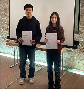 Artemiy Frolov aus der QP2 wurde schulintern und im Namen von Kultusministerin Julia Willie Hamburg für seine erfolgreiche Teilnahme an der 2. Runde der Internationalen PhysikOlympiade geehrt. In Anwesenheit seines Physikkurses eA bei Eric Meyer, der Fachkonferenzleiterin Physik Anne Wieneke, der für den Wettbewerb zuständigen Physikkollegin Dr. Gabriela Münster und unserem MINT-EC-Koordinator Dr. Wilko Westhäuser übergab Schulleiterin Jennifer Yavuz Artemiy sowohl die Urkunde der IPhO über die herausragende Teilnahme an der 2. Wettbewerbsrunde als auch eine Urkunde über den Förderpreis des Niedersächsischen Kultusministeriums in Höhe von 100,- Euro, mit welchem Artemiy dafür ausgezeichnet wurde, dass er erneut zu den besten drei Teilnehmenden der 2. Runde gehörte. Wir gratulieren herzlich zu diesem Erfolg und drücken die Daumen für die weitere Teilnahme! Die regelmäßige Teilnahme an nationalen und internationalen naturwissenschaftlichen Wettbewerben ist Teil des MINT-Excellence-Profils des Ratsgymnasiums.